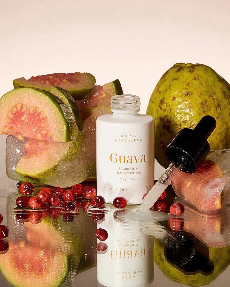 GUAVA combina extracto de guayaba y acerola, dos super frutas ricas en vitamina C natural, con ascorbyl glucoside, una forma estabilizada de vitamina C que ayuda a desvanecer manchas, unificar el tono e iluminar la piel sin irritar. El ácido hialurónico de alto y bajo peso molecular hidrata en profundidad, mientras la vitamina E y el pantenol protegen y refuerzan la barrera cutánea. Los extractos marinos y botánicos completan la fórmula, defendiendo la piel del estrés ambiental y de los radicales libres.